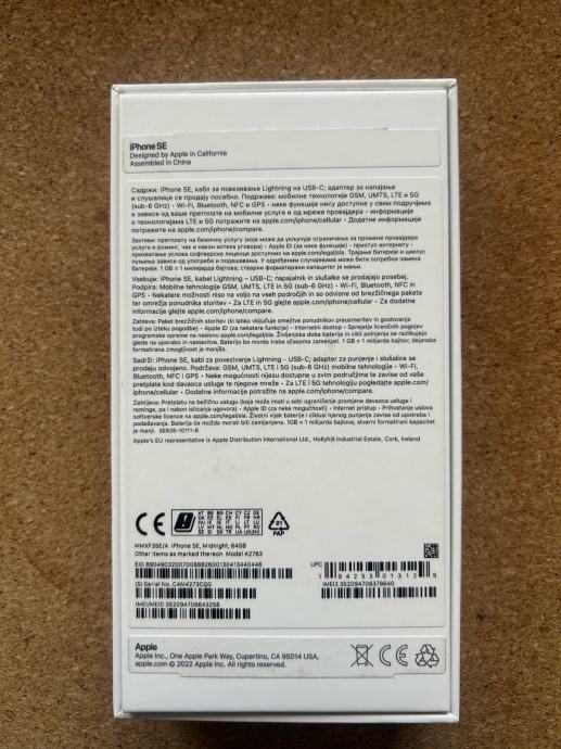 Prodajem iPhone SE (3. generacija, 2022.) koji je nikad nije bio korišten. Radi se o poslovnom uređaju koji je ostao neaktiviran i u originalnom pakiranju zajedno s kabelom i svom pratećom opremom.