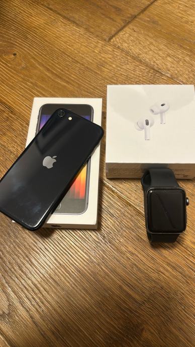 Prodajem paket Apple uređaja: iPhone SE 3. generacije, AirPods Pro 2. generacije i Apple Watch Series 3 u veličini 42mm.