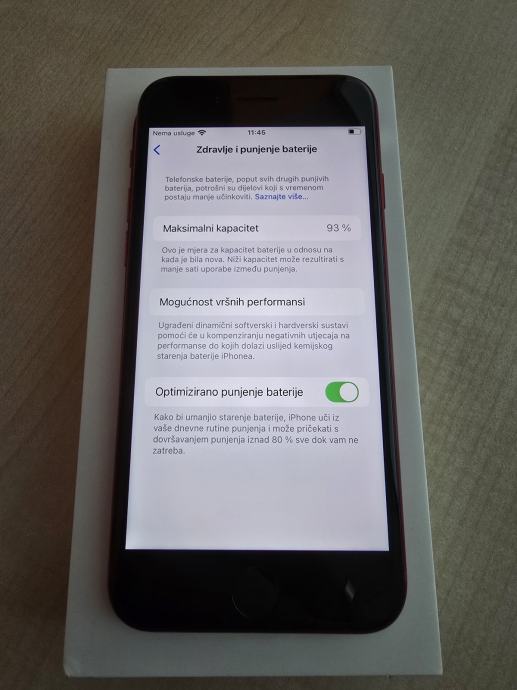 Stanje: Uređaj je od prvog dana u maskici, ekran i stražnje staklo su u odličnom stanju kao što se vidi i na slikama. Battery health je 93%.