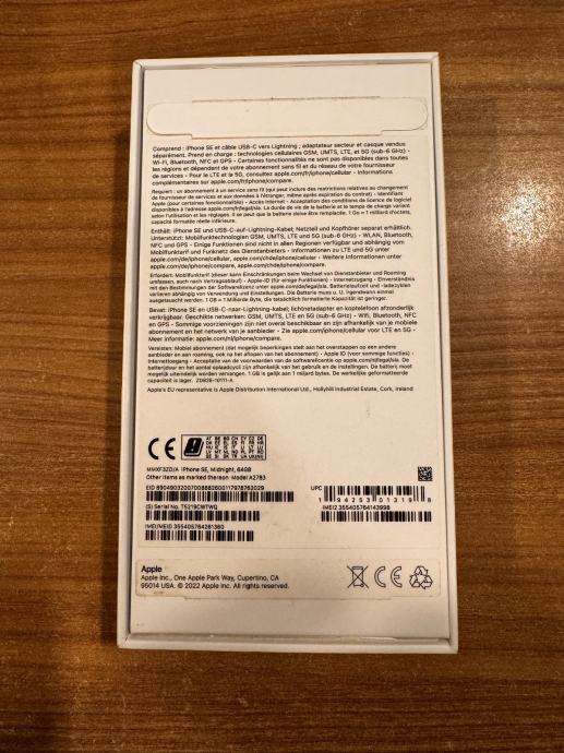 Prodajem iphone SE 3 generacije od 64gb memorije u crnoj boji. Mobitel je potpuno novoga stanja bez ikakvih tragova korištenja bio korišten jako malo kao službeni mobitel. Zdravlje baterije je na 98% kapaciteta. Sve na uređaju je ispravno,te nikada ništa nije mijenjano ili popravaljno.