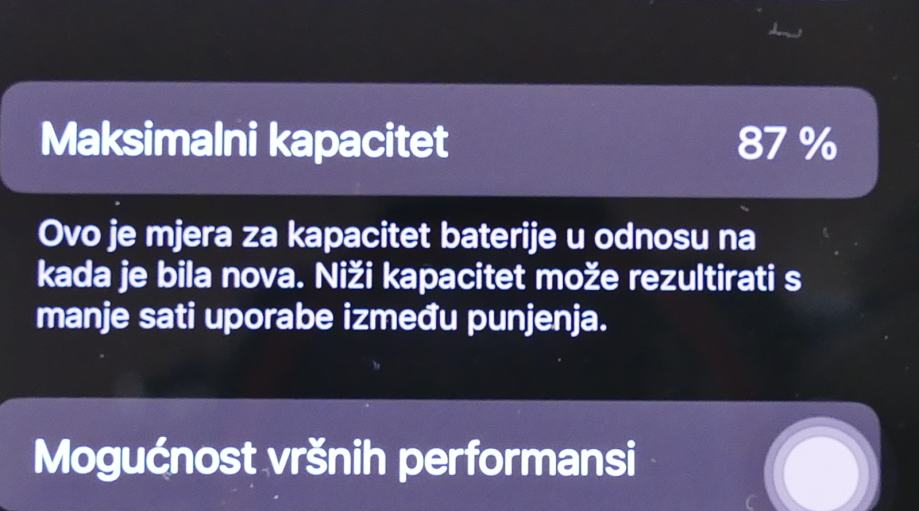 Baterija je visokih 87 %