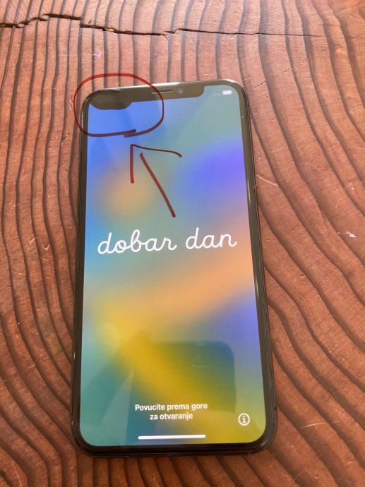 Ekran bez ogrebotina kao i pozadina. Slaba baterija, ne radi face ID, zvucnik je tih i na ekranu u vrhu lijevo ima mrtvih pixela na ekranu (vidi na slikama). Uz njega dolazi kutija i kabel za punjenje. Mobitel radi kako treba, kamera i sve ostao, pali i funkcionira, otkljucan na sve mreze.