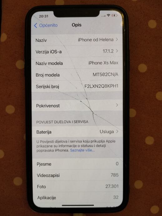 Prodajem i phone xs max. Ekran puknut, telefon funkcionalan. Prodajem ili mijenjam za razno....
