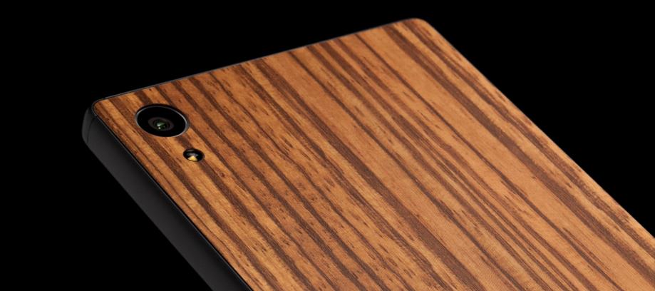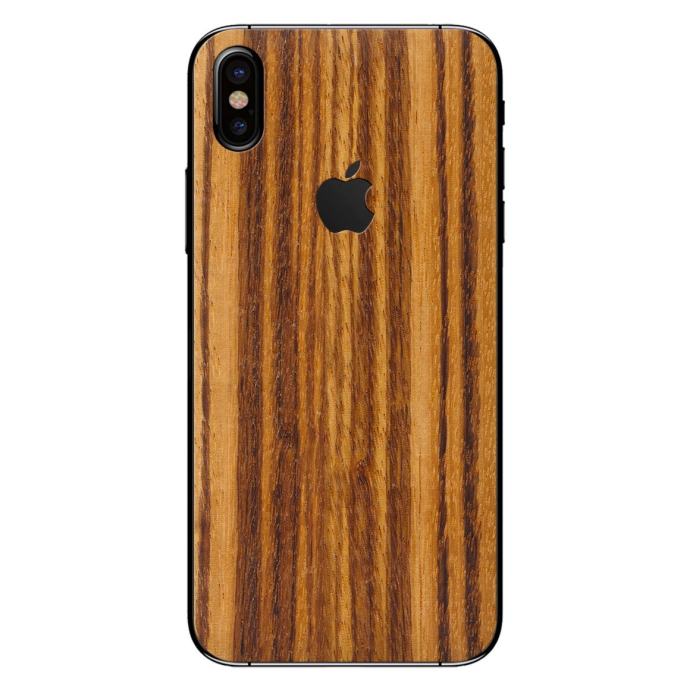 Original Slickwraps stražnja zaštita za iPhone X od pravog drveta u zebrano boji.