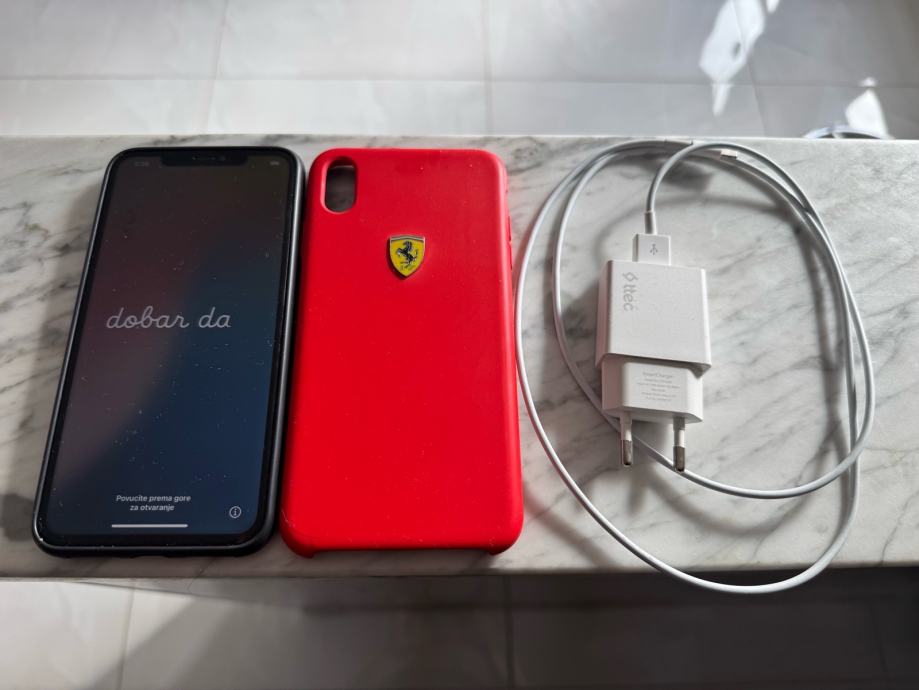 Prodajem rabljeni iPhone XS Max u odličnom stanju s dvije maskice (crna i crvena Ferrari). Uređaj dolazi s originalnim punjačem i kabelom, spreman za korištenje. Sve funkcije rade besprijekorno, idealan za one koji žele vrhunski Apple telefon po povoljnoj cijeni. Bez oštećenja