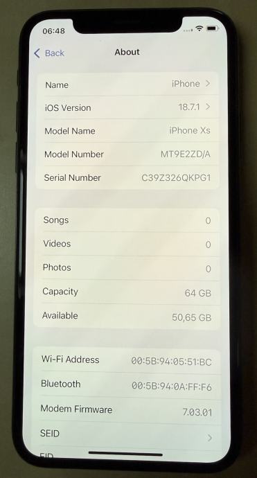 Prodajem rabljeni iPhone Xs s memorijom od 64 GB. Uređaj je upotpunosti ispravan. Zdravlje baterije je na 85 %.