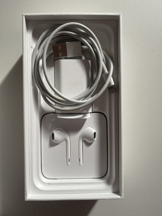 iPhone je kupljen 1/2019, od prvog dana masks i zastitno staklo. Ima kutiju, iglu, originalni punjac. Slusalice nisu uopce koristene. I sad ima crnu masku, koristenu.