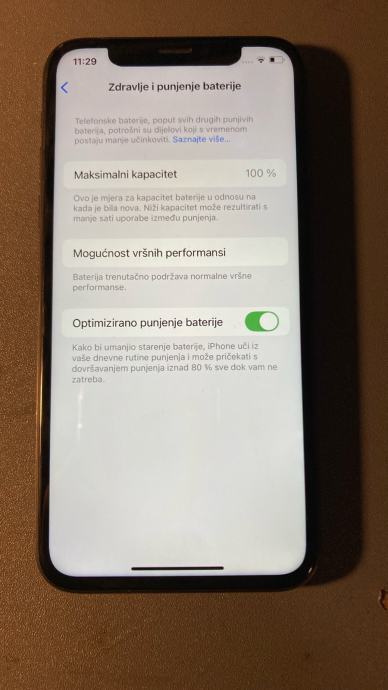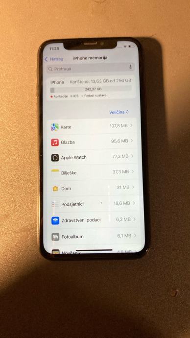 Prodajem iPhone XS s 256GB memorije u sivoj boji (space grey). Telefon je potpuno ispravan i funkcionalan, iOS sustav radi bez problema. Svi pregledani podaci na uređaju potvrđuju kapacitet i radnu sposobnost. Dostupan za brzo preuzimanje ili slanje. Zdravlje baterije je 100%
