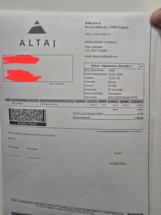Novi zapakirani Ad blue spremnik za Audija A4 I A5 linije b9.