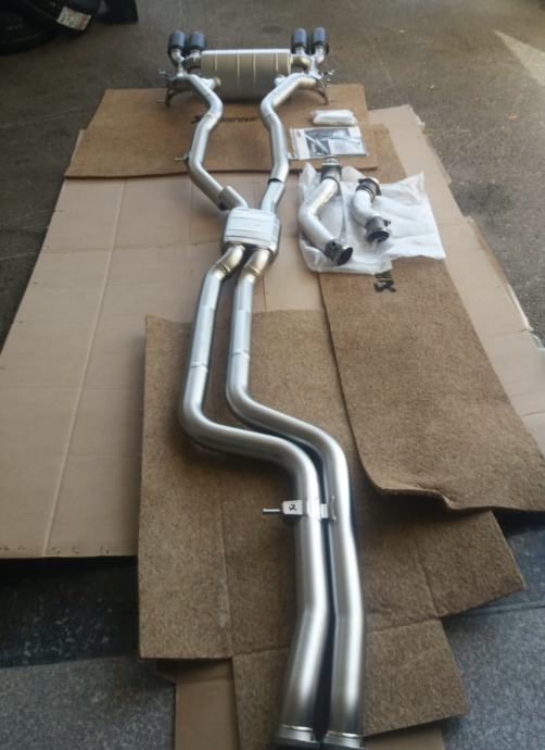 Prodajemo AKRAPOVIČ ispušni sustav TITAN street legal za BMW M4,M3 F8x , komplet ispušni sustav za 5500 eura,sa downpipe-om za 6500 eura. Na vozilu je bio cca godinu dana i 12000 km.