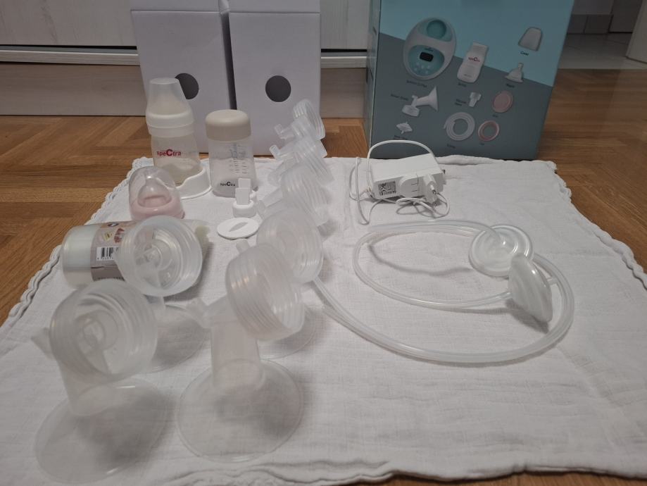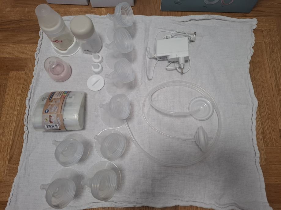 Kvalitetna dvostruka električna izdajalica s dodatnom opremom (punjiva izdajalica s ugrađenom baterijom, 8 različitih lijevaka, zatvoreni sustav za sigurno izdajanje, 2 bočice s poklopcima...) u originalnoj kutiji.