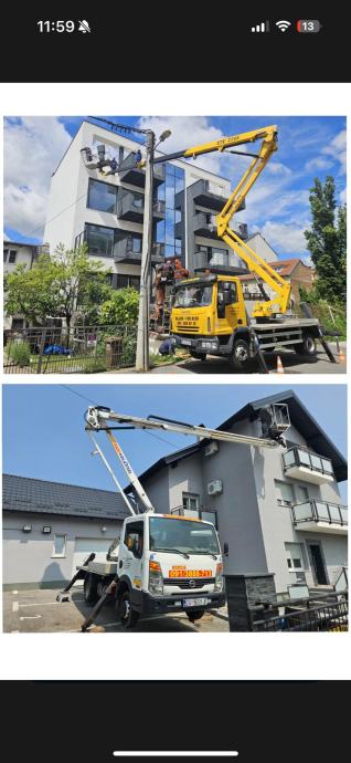 Nissan cabstar do 18.5 metara radne visine,u stranu 9 m. Cijena radnog sata 50 eura
