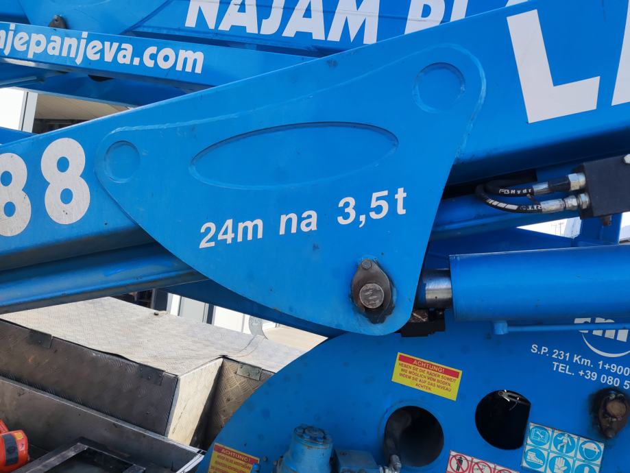 Iznajmljivanje auto košare - auto korpe radna visina 24 metra isključivo sa operaterom.
