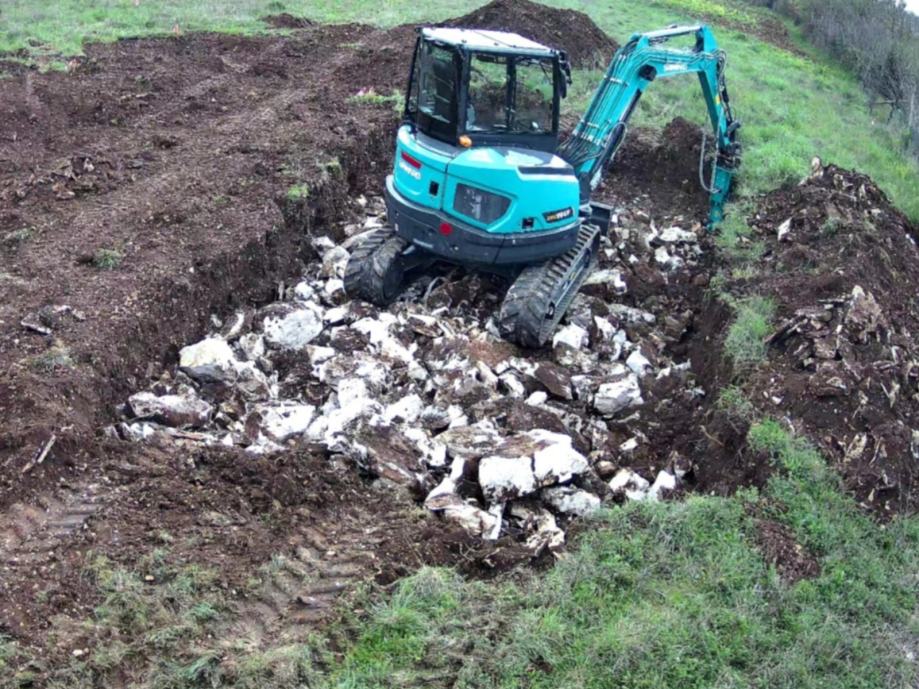 Najam bagera 6t. sa strojarom ili usluga iskopa.Brza hidroulična spojka,gumene gusjenice itd...
