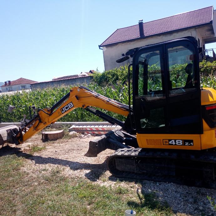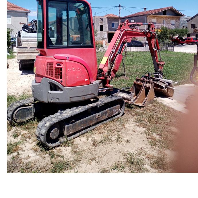 Najam strojeva sa Operaterom.Bager od 1 tone-širina od 0.8m,2.5 tona-1.5 m širine i 5 tona -2 m širine.Svi strojevi su zero swing-bez guzice.Valjak od1.6 t-80 cm širina.Mini damper 120 cm širine