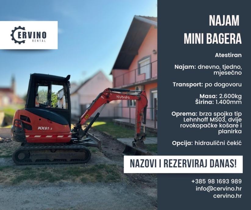 Cervino d.o.o., za iznajmljivanje građevinske mehanizacije i opreme na području Slavonije i Baranje