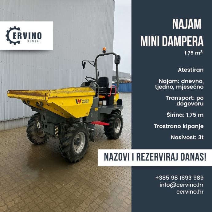 NAJAM mini dampera WACKER NEUSON DW30, zapremina 1.75m3, širina 1.75m