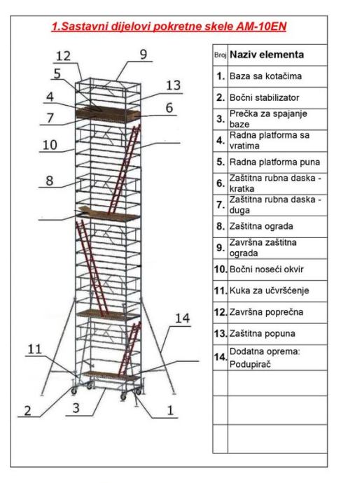Tehničke karakteristike pokretne skele: