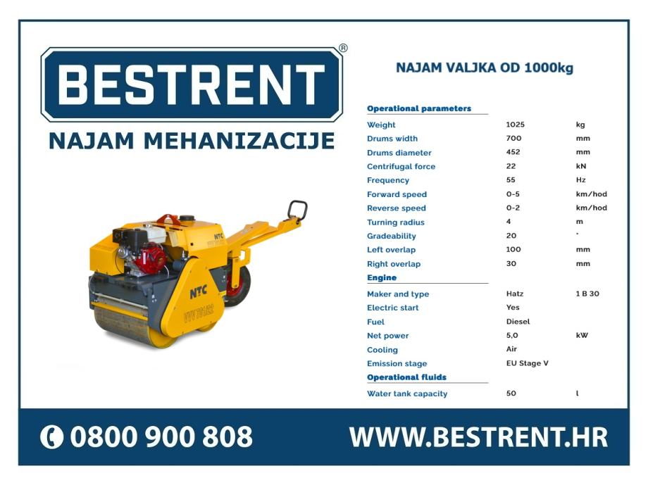 Najam valjka 1t.: 64,00 € + PDV = 80,00 € / dan