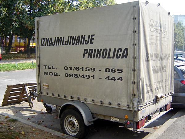 Teretne prikolice sa ceradom za osobne automobile i kombi vozila, može i za manje kamione. Preuzimanje u Zagrebu.