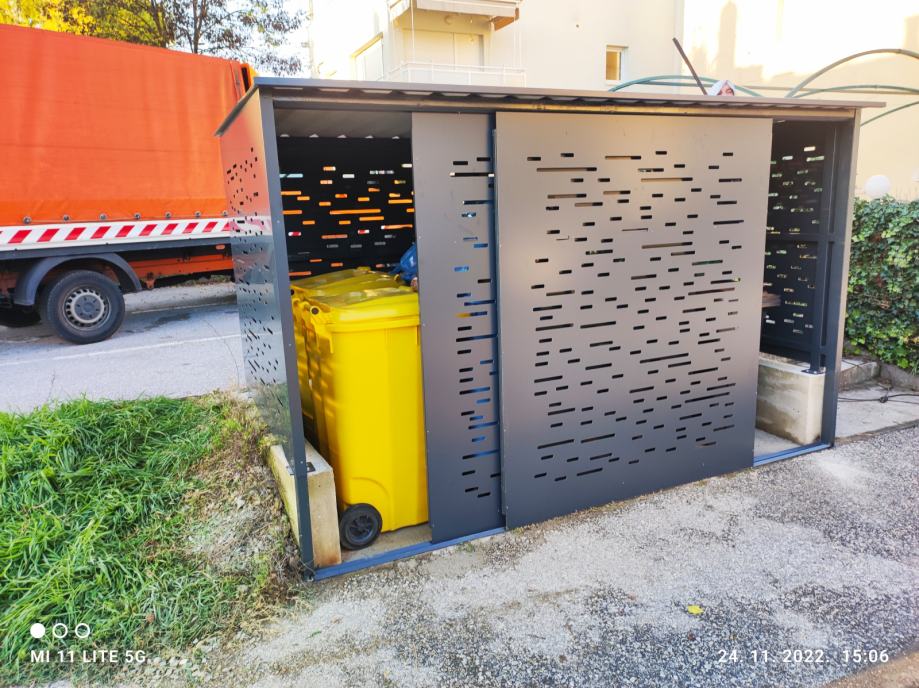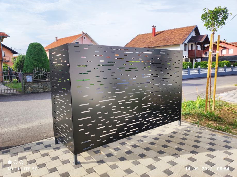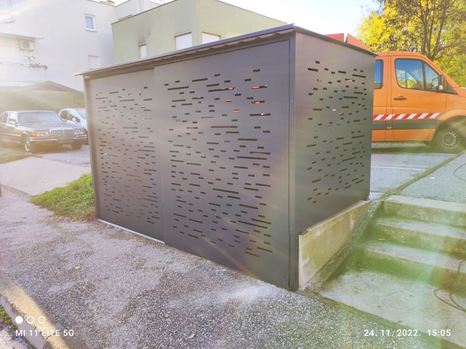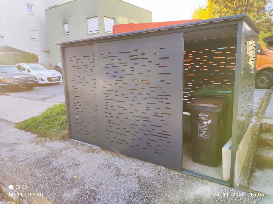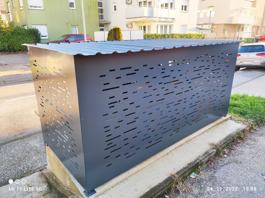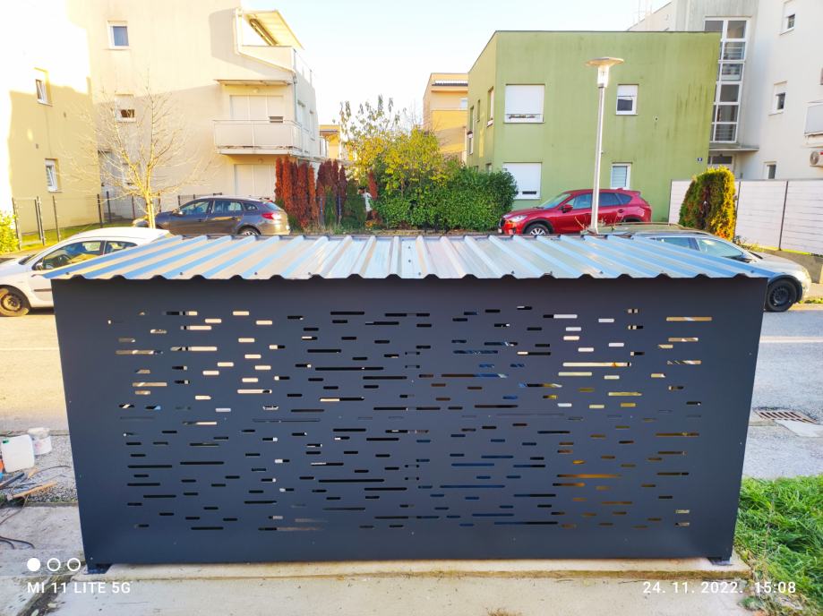 Izrađujemo spremišta za kante (smetlarnike) od metalnih konstrukcija i različitih panela i boja po Vašoj želji.