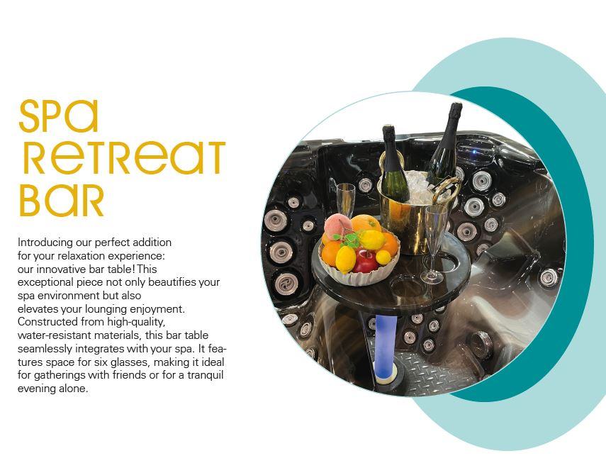 Ali to nije sve — Mirage Spa dolazi i s Spa Retreat Bar™ za vrhunsko iskustvo opuštanja. Ima mjesta za šest čaša, savršen je za društvena okupljanja ili mirnu večer u samoći.