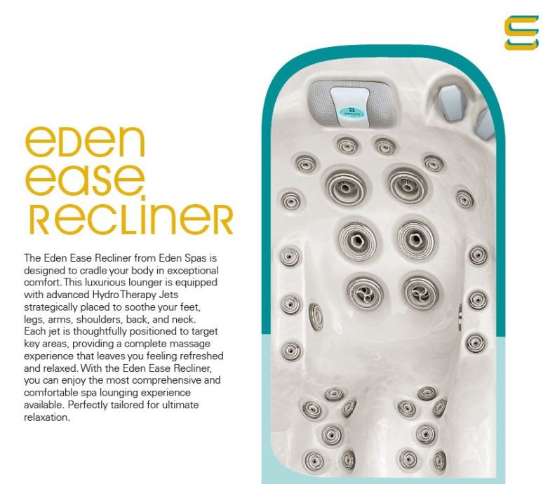 Mirage Spa opremljen je s 2 Eden Ease Recliner™ ležaljke. Ove luksuzne ležaljke izrađene su tako da obgrle tijelo i pruže neusporedivu razinu udobnosti.