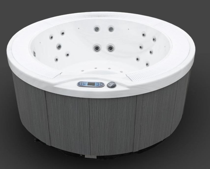 Visokokvalitetna okrugla hidromasažna kada s terapeutskim masažama i „overflow“ sustavom.