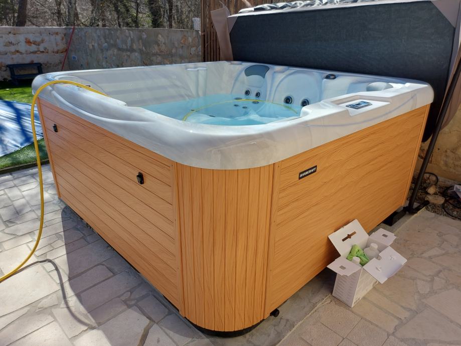 Visoko kvalitetna hidromasažna kada s terapeutskim masažama za pet osoba.