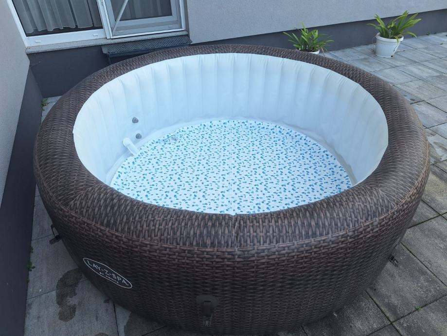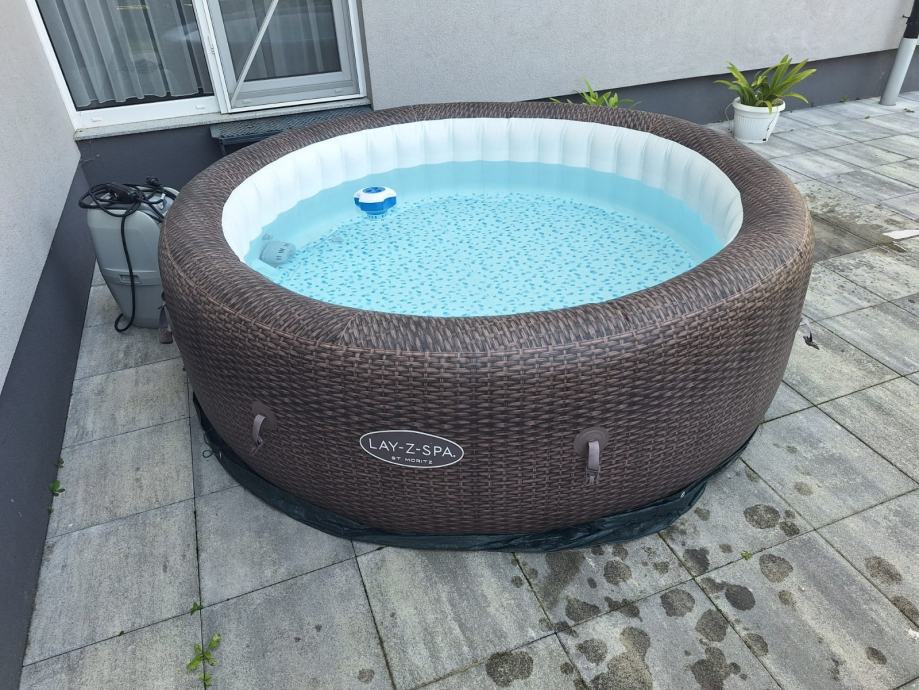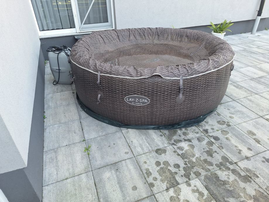 Prodajem hidromasažni bazen, korišten 3 sezone. Na donjem djelu je jacuzzi krpan ali sve savršeno funkcionira, otprilike svakih mjesec dana se treba malo napumpati. Pumpa radi savršeno i uz jacuzzi dajem gljivu za tablete i punu kutiju tableta.