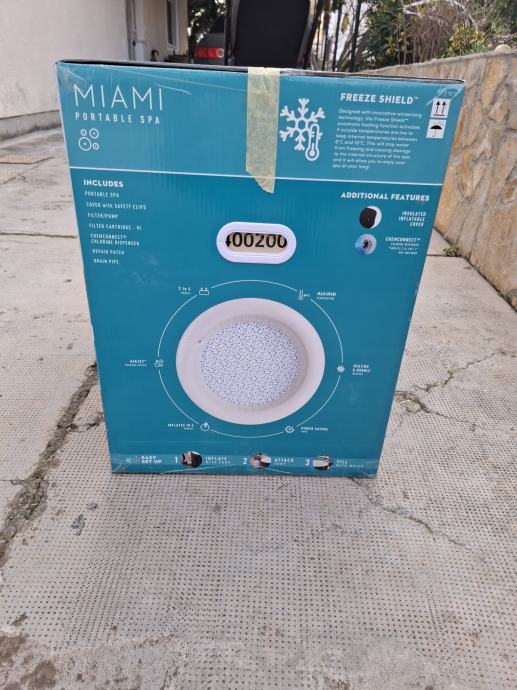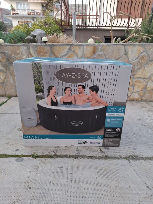 Prodajem nekorišteni hidromasažni jacuzzi na napuhivanje Miami. Kutija je otvorena ali jacuzzi nikad nije korišten. Pogodan do 4 osobe.