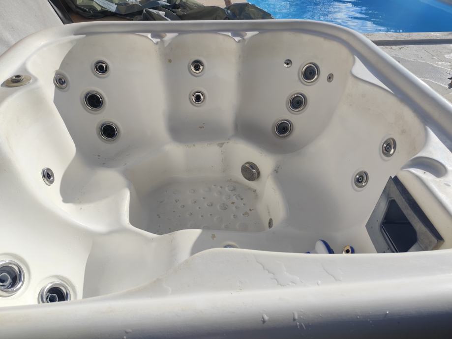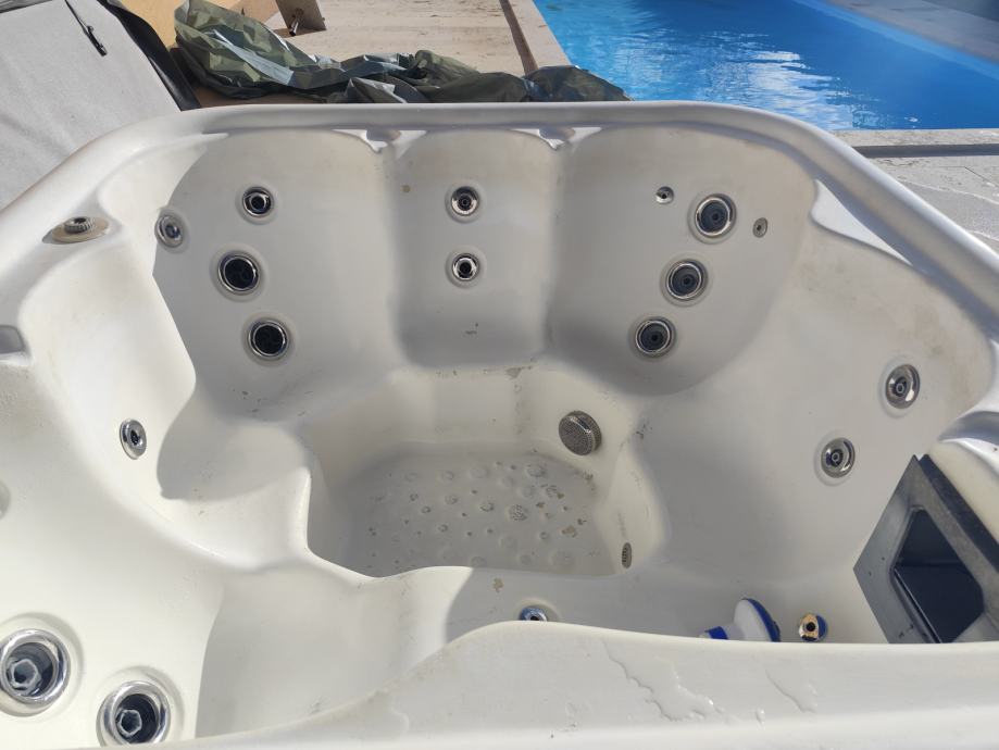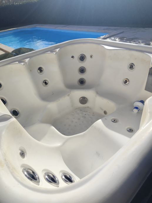 Prodajem vanjski jacuzzi za 5 osoba u solidnom stanju sa prekrivačem sa 27 mlaznica. Grijač 3 kW. Korišten sezonski.