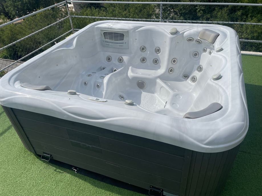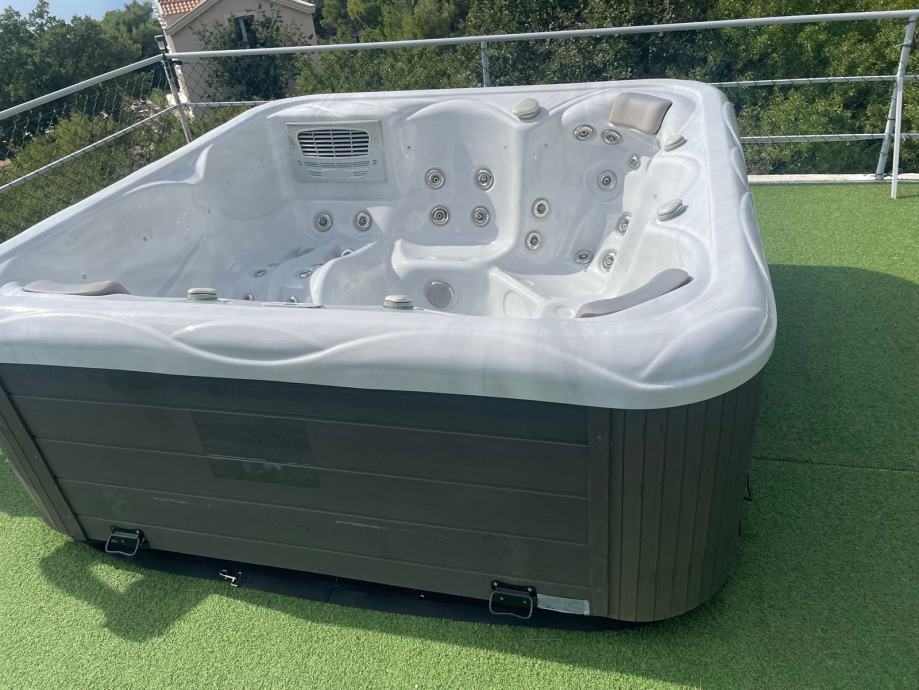 Prodaje se jacuzzi star 7 godina, jacuzzi savrseno radi, sve mlaznice,lampice i ostalo u pogonu, jacuzzi je namijenjen za 6 osoba ali stane i vise, na jednom dijelu je popustila staklo plastika ali to je zakrpano.