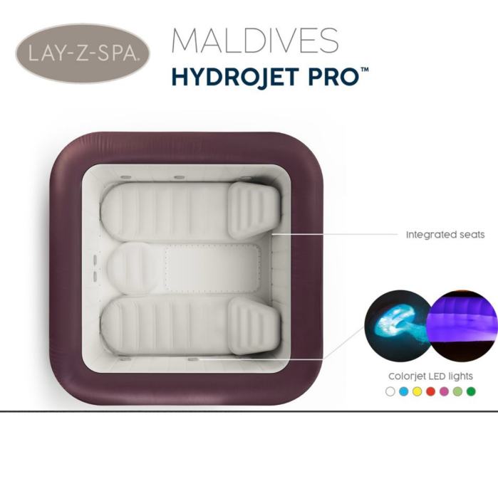Bazen HydroJet PRO Maldives vrhunski je model na napuhavanje koji nudi vrhunsku opremu kao što je zaštita protiv smrzavanja Freeze Shield ili LED osvjetljenje u boji, dva podvodna ležaja.