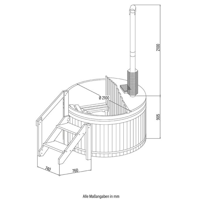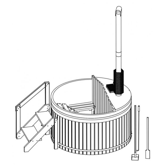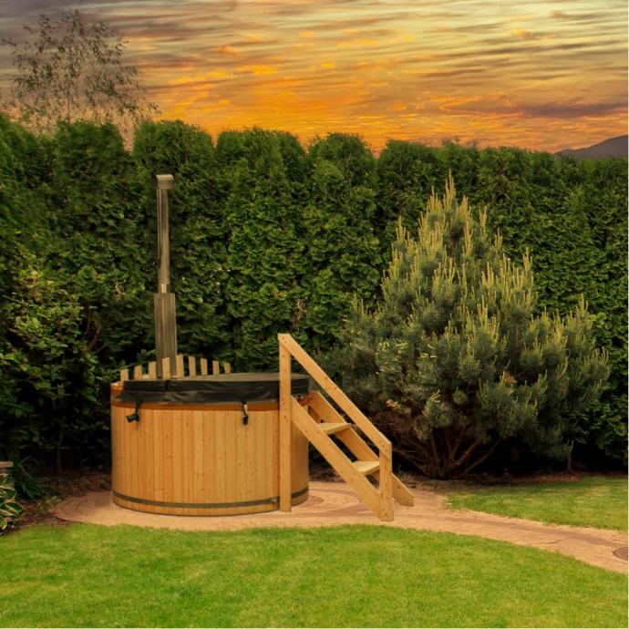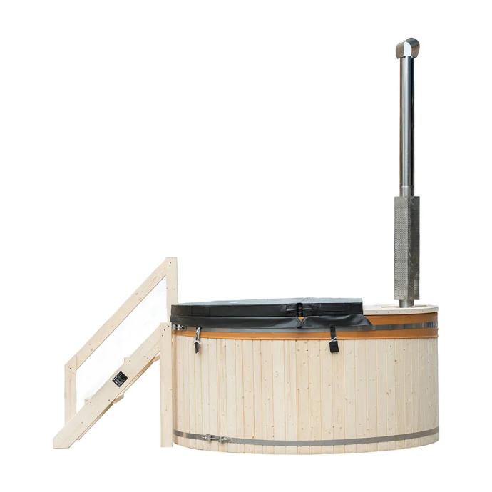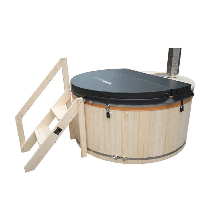 Moderan dizajn u kombinaciji s elegantnim i skandinavskim naglascima čini vanjski bazen visoke kvalitete atraktivnim. Snažna peć na drva u vrlo kratkom vremenu zagrije vašu hidromasažnu kadu na ugodnu temperaturu za kupanje od oko 30 - 40°C. Zbog optimalne veličine i okruglog oblika, hidromasažnu kadu možete savršeno smjestiti u svoj vrt i uživati u pogledu. Masivno drvo vanjske ploče obećava trajnost i impresionira svojim modernim izgledom. Unutarnja obloga izrađena je od visokokvalitetne i izdržljive PVC folije i osigurava da drvena unutrašnjost ostane nepropusna i zaštićena. Zahvaljujući udobnim drvenim klupama u jacuzziju doživjet ćete maksimalnu udobnost sjedenja.