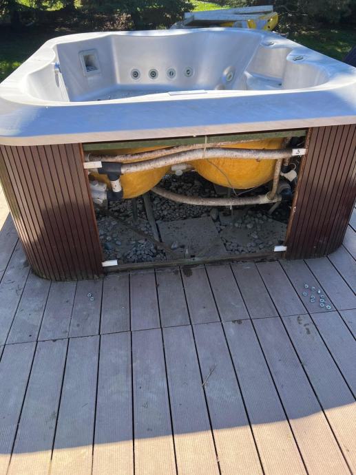 Uz jacuzzi dolazi metalna konstrukcija, obloga pokrov, nove pumpe, sva elektronika. Moguca provjera ispravnosti kod firme koja ga je redovito servisirala.