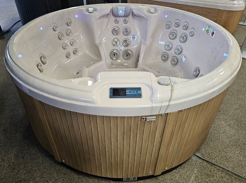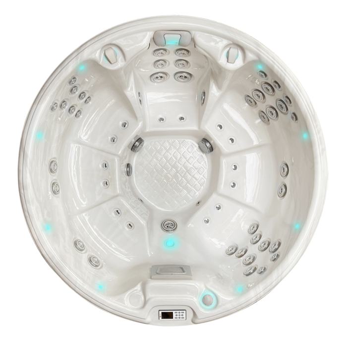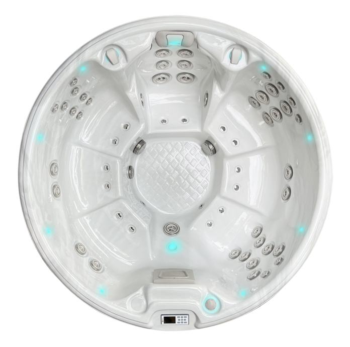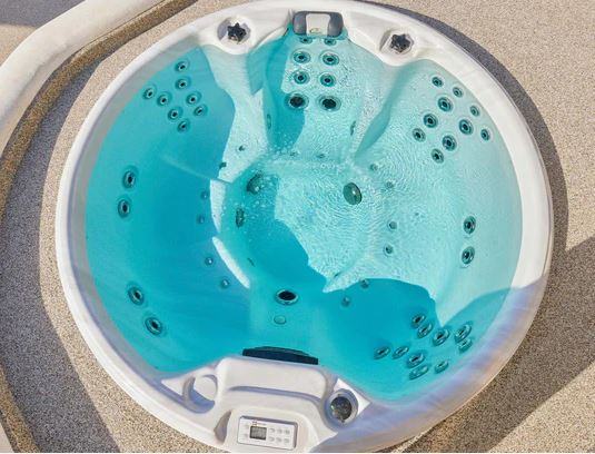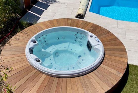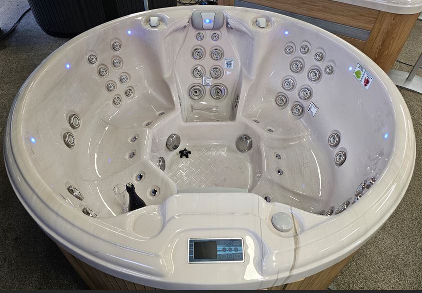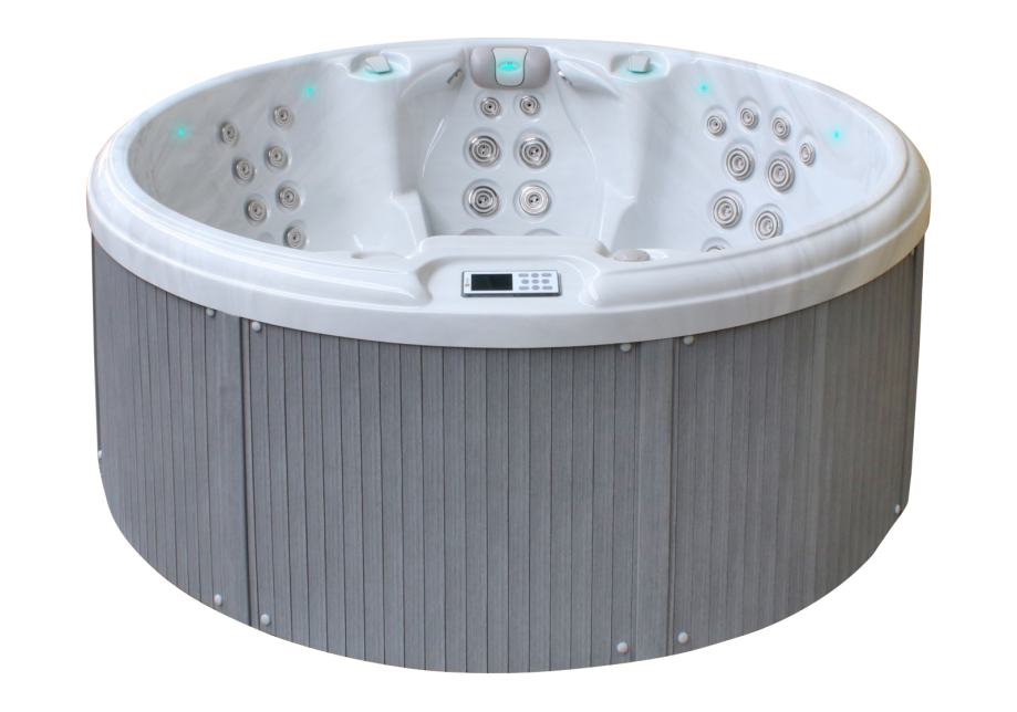 Lijepa okrugla hidromasažna kada za sedam osoba s terapeutskim masažama.