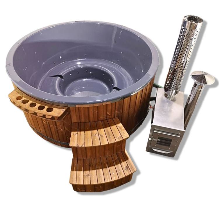 Ri Pool Drvena kupka smreka drvo fiber glass 200cm vanjska peć na drvo