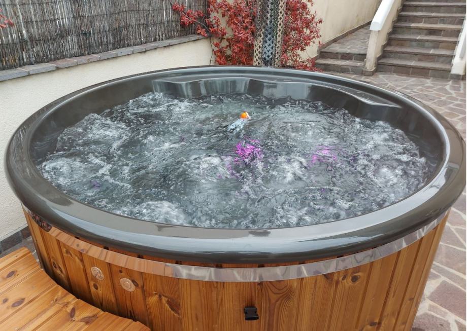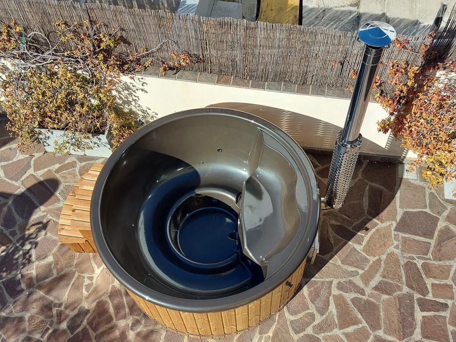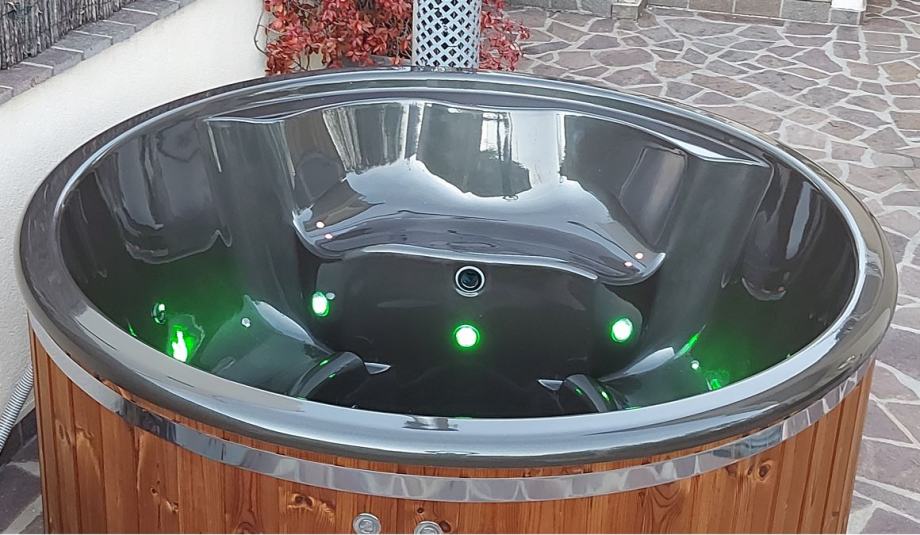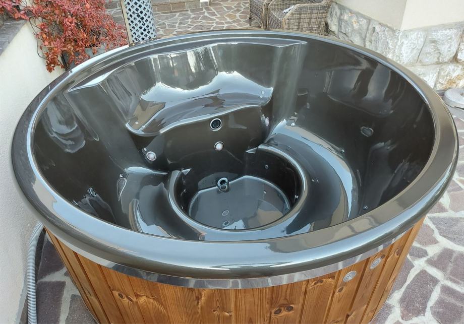 Materijal: Termo drvo, unutar kade fiber glass, dakle nema curenja kao što je uobičajno kod običnih drvenih kupki