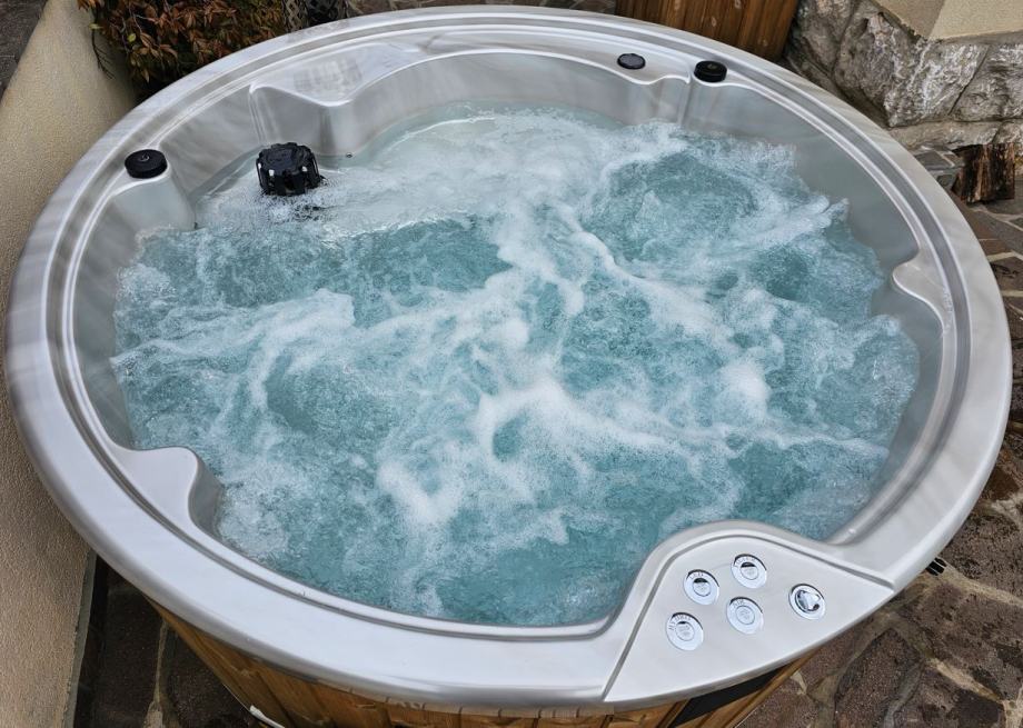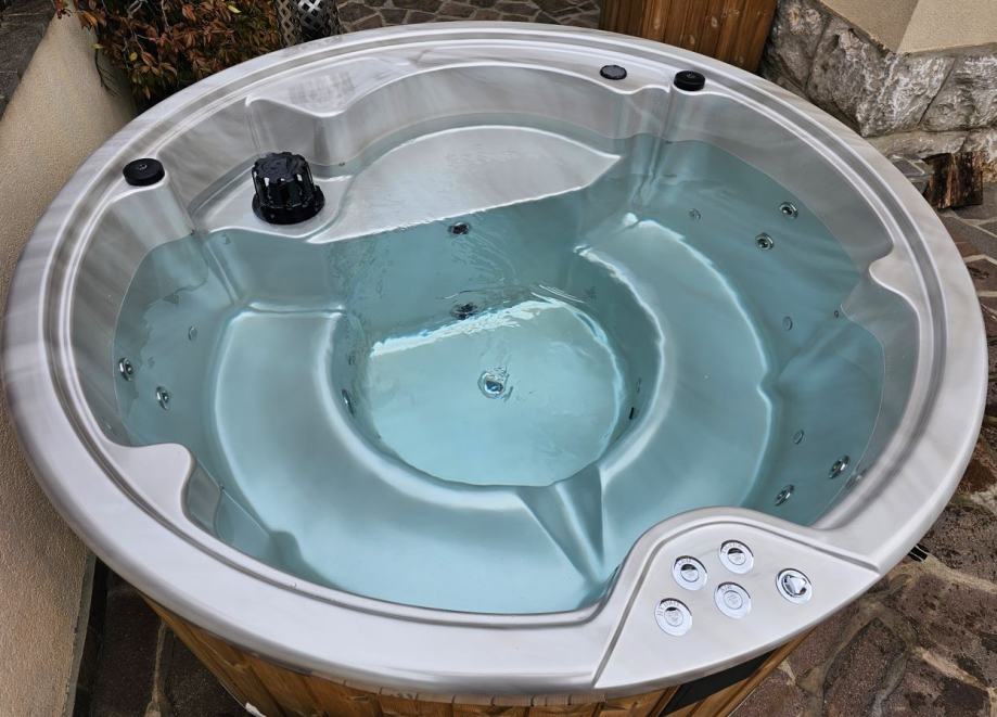 Prekrasna drvena kupka / hot tub. Školjka je napravljena od pravog akrila, koji je puno kvalitetniji materijal nego fiberglas.