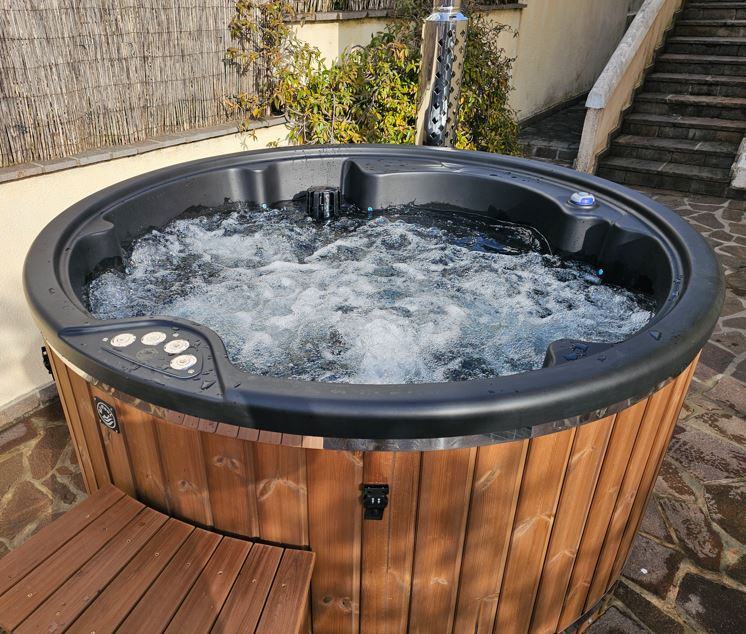 Prekrasna drvena kupka / hot tub. Školjka je napravljena od pravog akrila, koji je puno kvalitetniji materijal nego fiberglas.