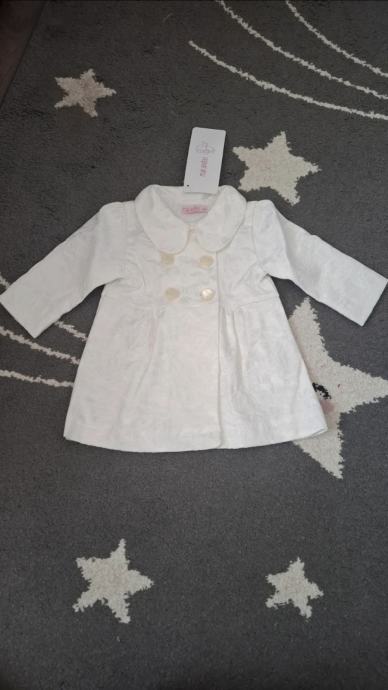 Novi kaputić (s etiketom) za bebe idealan za svečane prilike. Boja je prljavo bijela. Veličina 68.