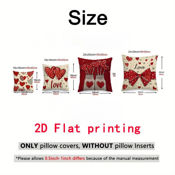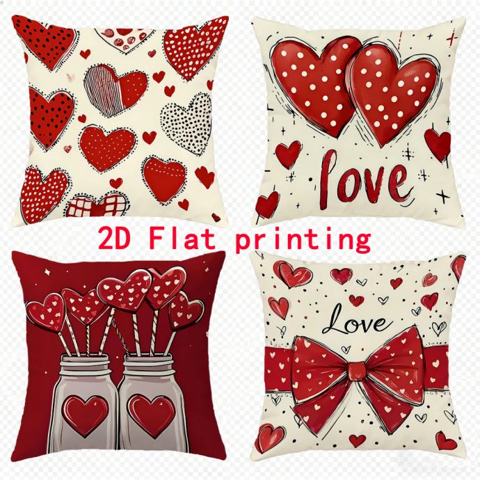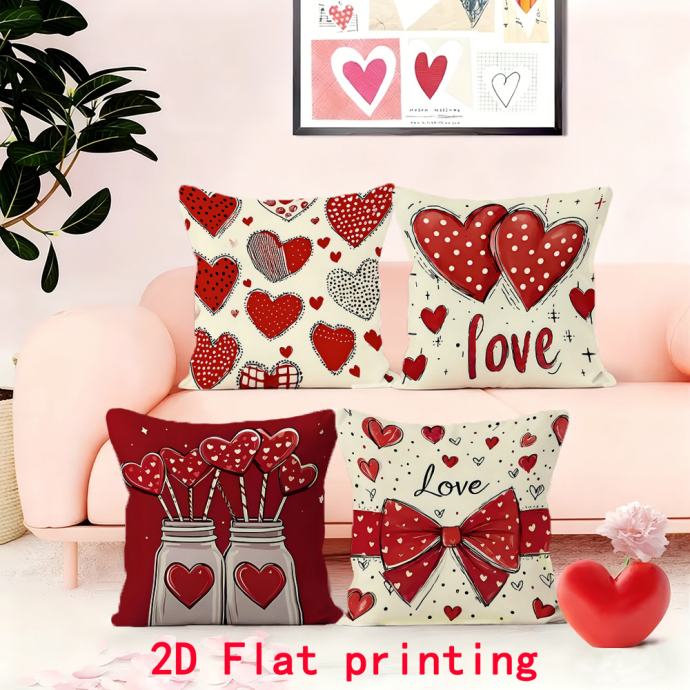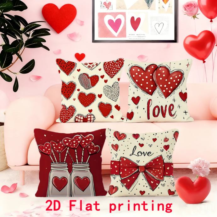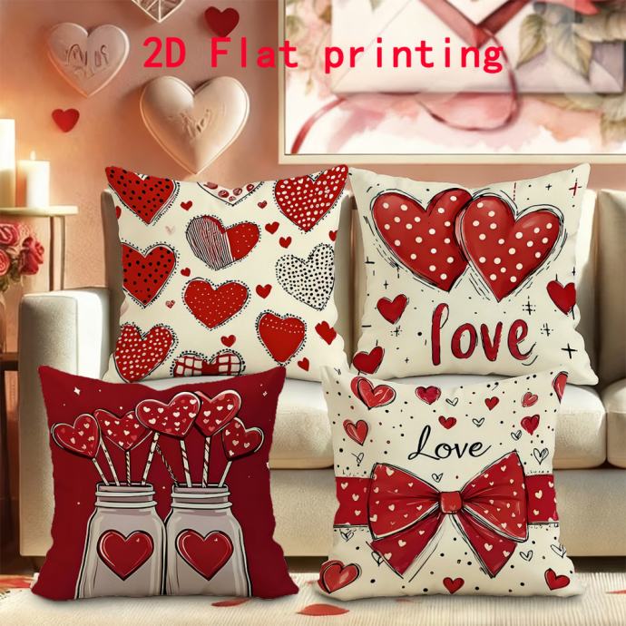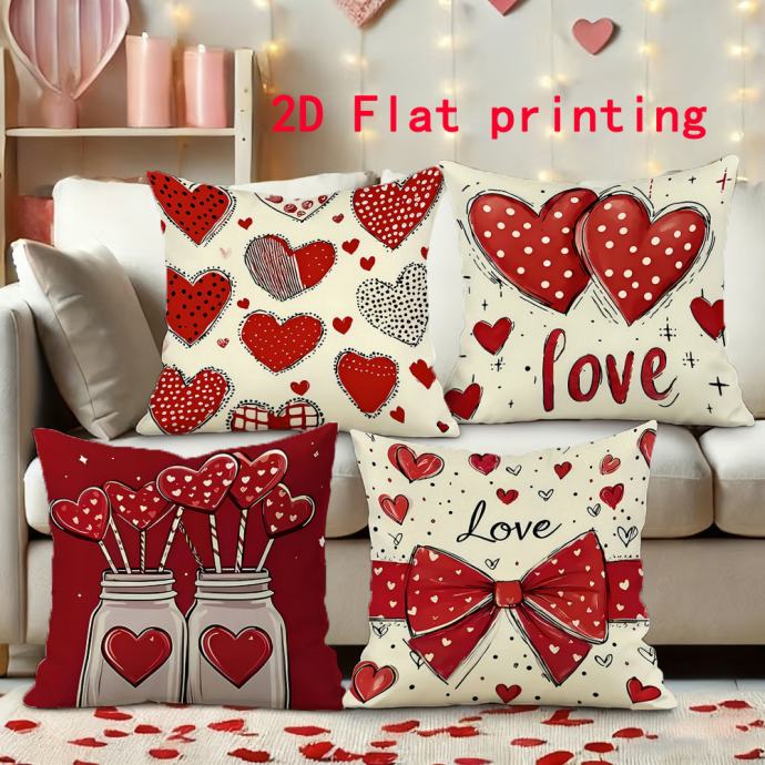 2D ravne - 1/4 kom. Jastučnice s uzorkom srca za Valentinovo, 2D printane: Prepune romantike, vječne ljubavi. Savršene za Valentinovo dekoraciju, romantični slatki dekor za sobe za parove, pogodne za dnevne sobe, sofe, spavaće sobe