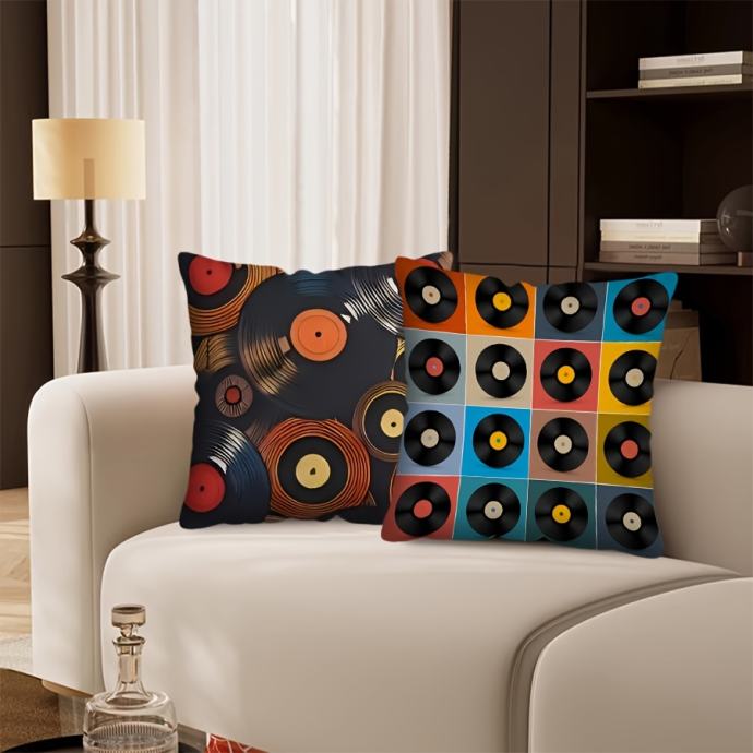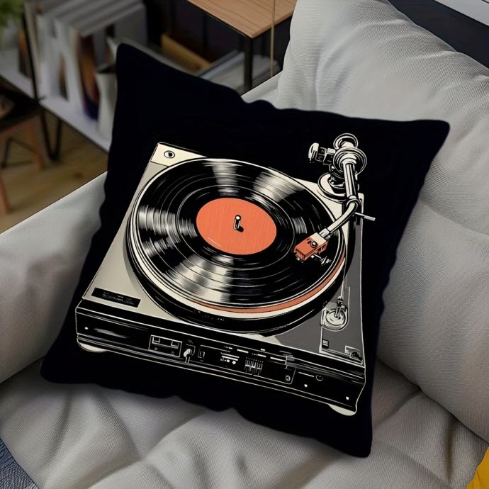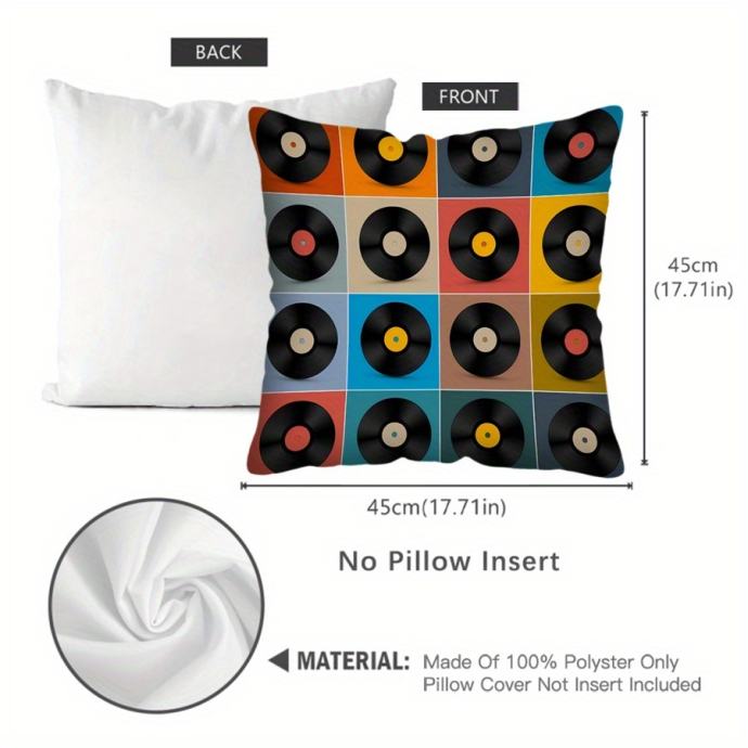 1 komad jastučnice s retro vinilom, modernog dizajna s patentnim zatvaračem, idealan za korištenje na sofama, u dnevnim sobama, spavaćim sobama ili uredima - izvrstan poklon za ljubitelje glazbe, otisnut s jedne strane, ne uključuje umetak