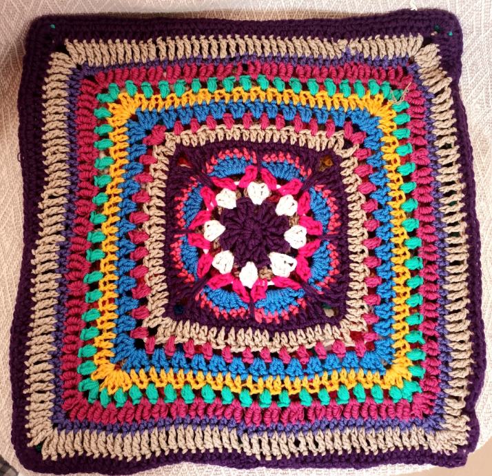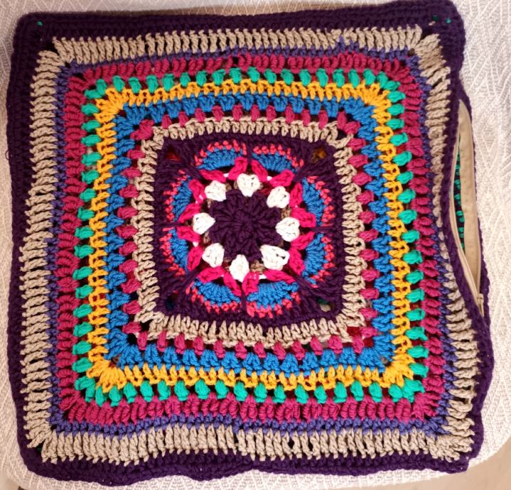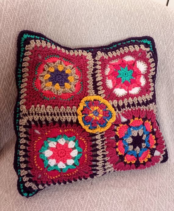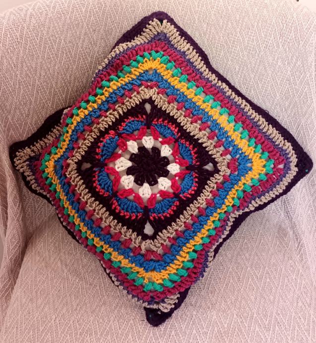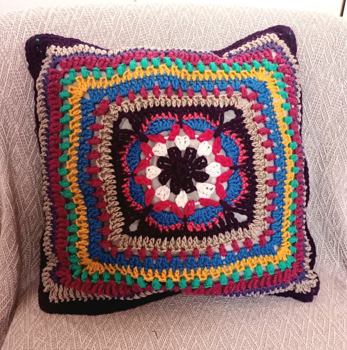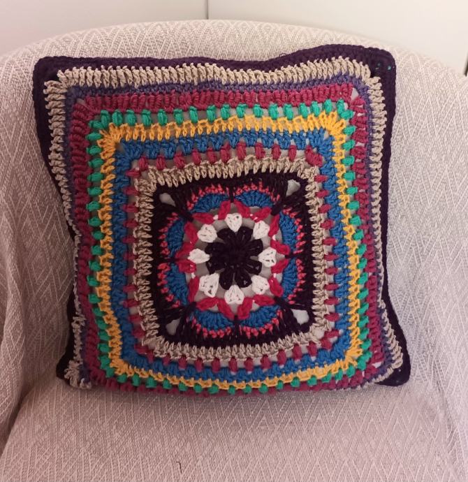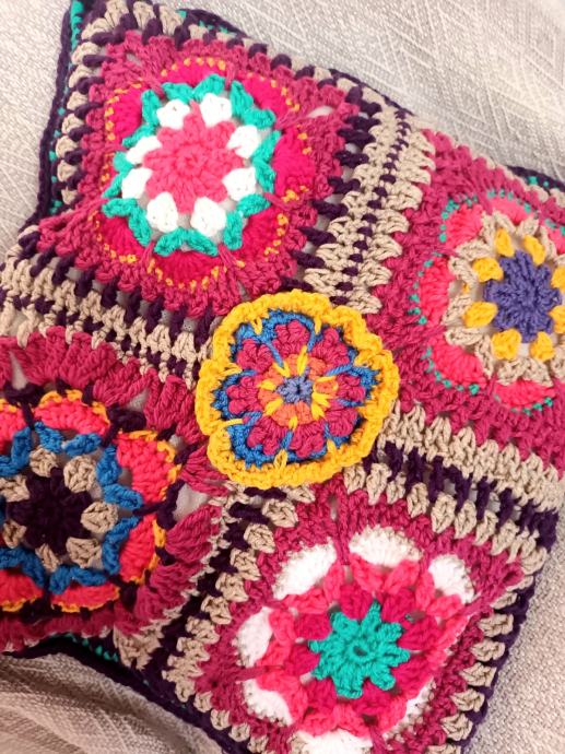 Heklana navlaka za jastuk. Izrađen od miješane i akrilna vune. Spojen patentnim zatvaracem.