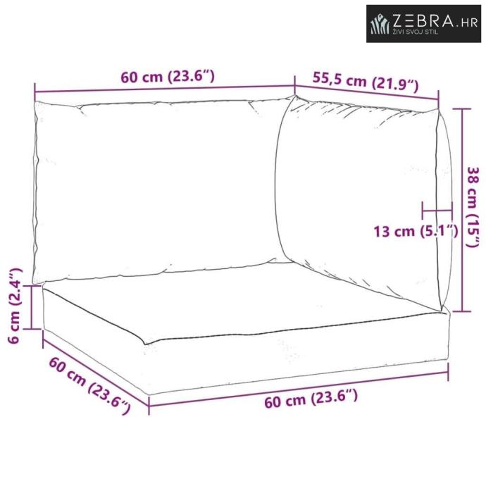 Dimenzije jastuka za naslon: 60 x 38 x 13 cm (Š x D x V)