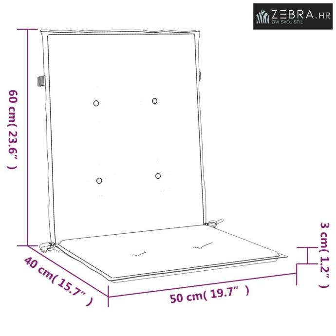 Dimenzije jastuka za naslon: 60 x 50 x 3 cm (Š x D x Deb.)