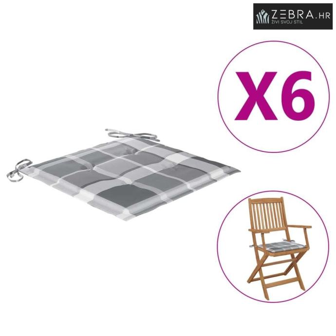 Jastuci za vrtne stolice 6 kom sivi karirani 40x40x4 cm tkanina - Sivi