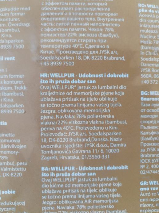 Jastuk se prodaje na JYSK za 23 EUR, ovaj je kupljen radi potencijalnih lumbalnih problema supruge, ali na kraju nikad nije korišten