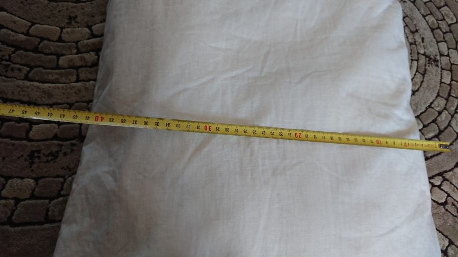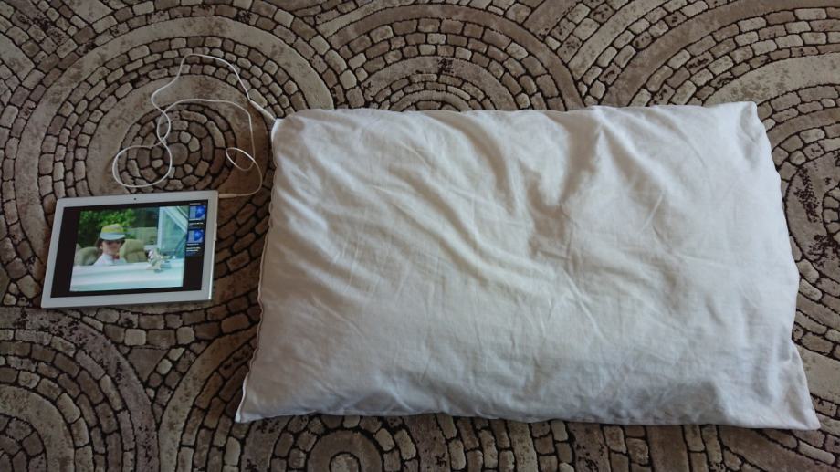 Jastuk nije korišten za spavanje, samo isproban nekoliko puta. Na jednom mjestu je pošaran (molim vidjeti zadnju sliku), a kao jastučnice možete koristiti kakve god imate jer je dovoljno mekan da mu većina odgovara.